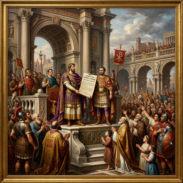 Emperors Constantine and Licinius issue the Edict of Milan, granting religious freedom throughout the Roman Empire and ending the era of state-sponsored persecution of Christians.