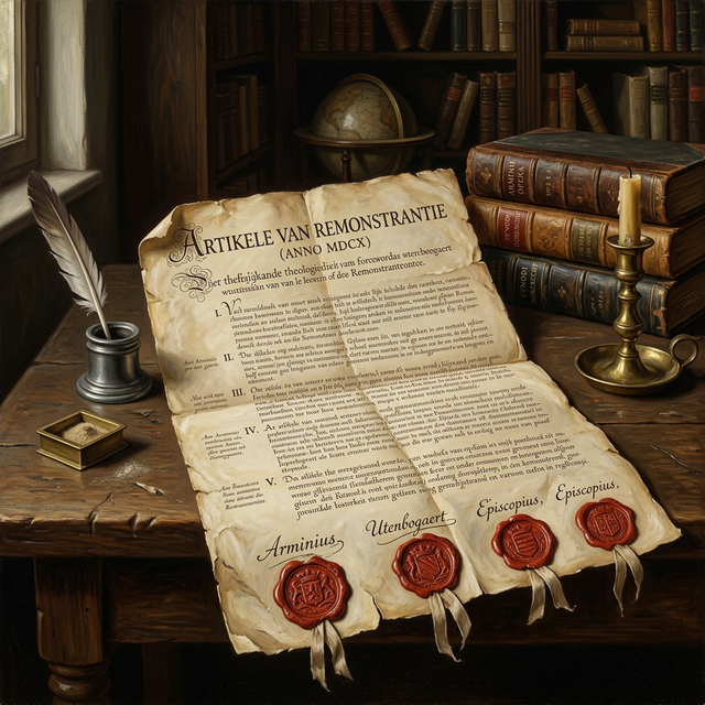 Followers of Arminius issue the 'Five Articles of Remonstrance,' formally presenting their views on conditional election, universal atonement, and resistible grace.